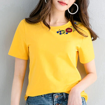 • FLORAL ELEGANCE: Delight in the subtle sophistication of our Women's Floral Neck Embroidered Round Neck Plain T-Shirts. Each shirt is meticulously crafted with delicate floral embroidery around the neckline, adding a touch of grace to your ensemble.