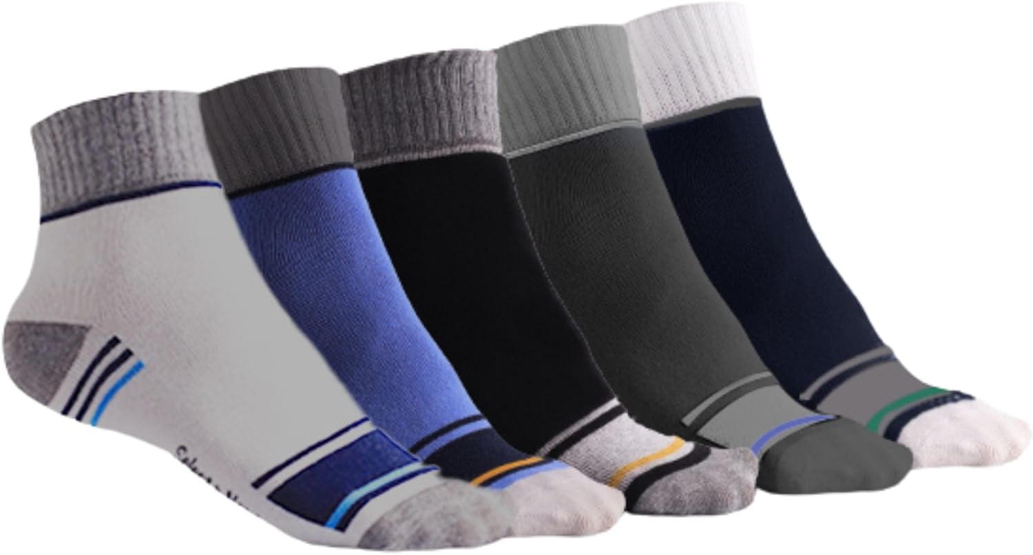SUPERIOR COMFORT FOR EVERY STEP: Elevate your everyday sock game with our Men's Quarter Length Crew Socks. Crafted to perfection, these socks are the epitome of comfort, ensuring that each step you take feels like a dream. Slip your feet into the embrace of breathable, soft quarter socks that caress your feet, offering unrivaled comfort. A DASH OF STYLE WITH CONTRAST HEEL & TOE: Socks aren't just about comfort; they're a style statement too. Our Men's Crew Socks are designed with a touch of sophistication a contrast heel and toe that adds a subtle yet stylish flair to your wardrobe. Whether you're dressing up for a special occasion or simply enhancing your daily attire, these socks are your ideal choice. VERSATILITY AT ITS BEST: From casual outings to intense sports sessions, these Men's Athletic Socks are your versatile companions. Wear them when you're relaxing at home, going for a jog, or playing your favorite sport. With their sturdy build and comfort-focused design, these socks are perfect for all your activities. PREMIUM QUALITY MATERIAL BLEND: When it comes to socks, material matters. Our Men's Quarter Length Crew Socks are a blend of 67% Cotton, 20% Spandex, 9% Nylon, and 4% Elastic, ensuring durability and the perfect amount of stretch. These socks are designed to stand the test of time, making them a valuable addition to your wardrobe. AN ARRAY OF CLASSIC COLORS: Whether you prefer classic black, pristine white, timeless navy blue, serene sky blue, or sophisticated charcoal, we've got you covered. Our Men's Crew Socks come in a range of appealing colors to suit your mood and style. Mix and match or stick to your favorites; these socks offer you a rainbow of choices.
